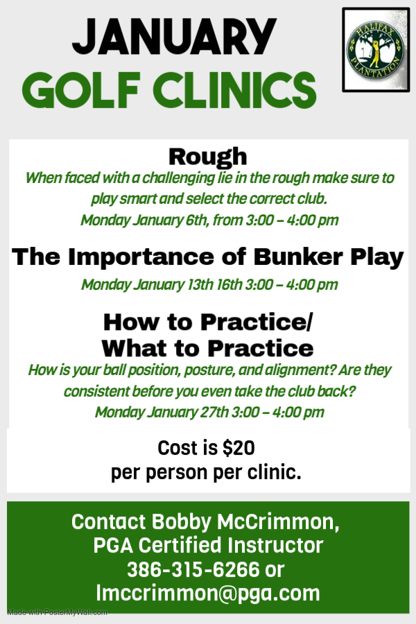 Golf Clinic: How to Practice/What to Practice November 19, 2024 by Date: January 27, 2025 Time: 3:00 pm to 4:00 pm
