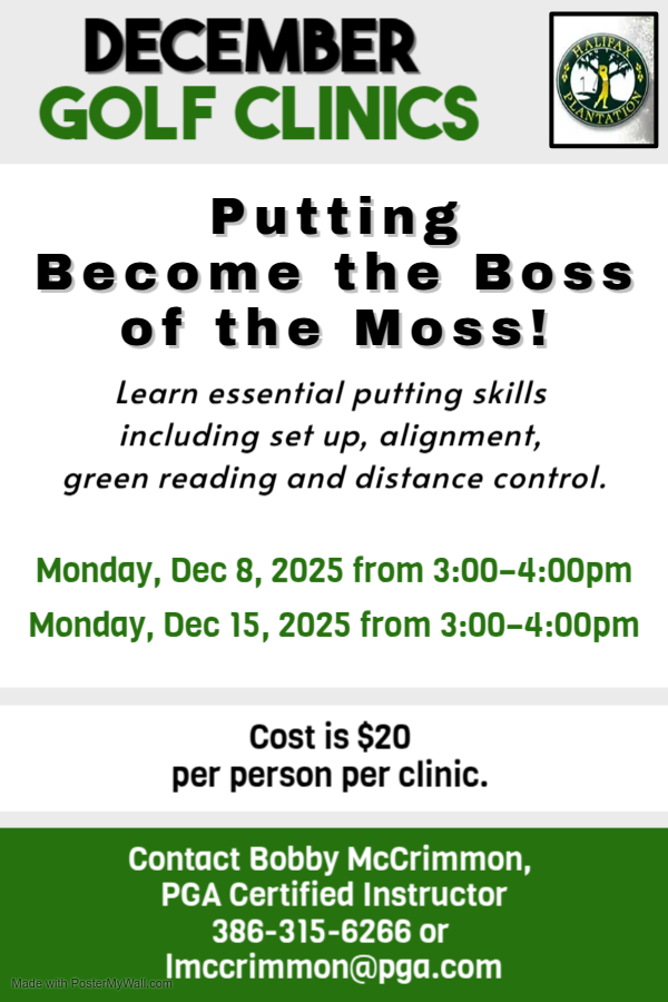 Golf Clinic: Putting Become the Boss of the Moss! November 14, 2025 by Date: December 15, 2025 Time: 3:00 pm to 4:00 pm