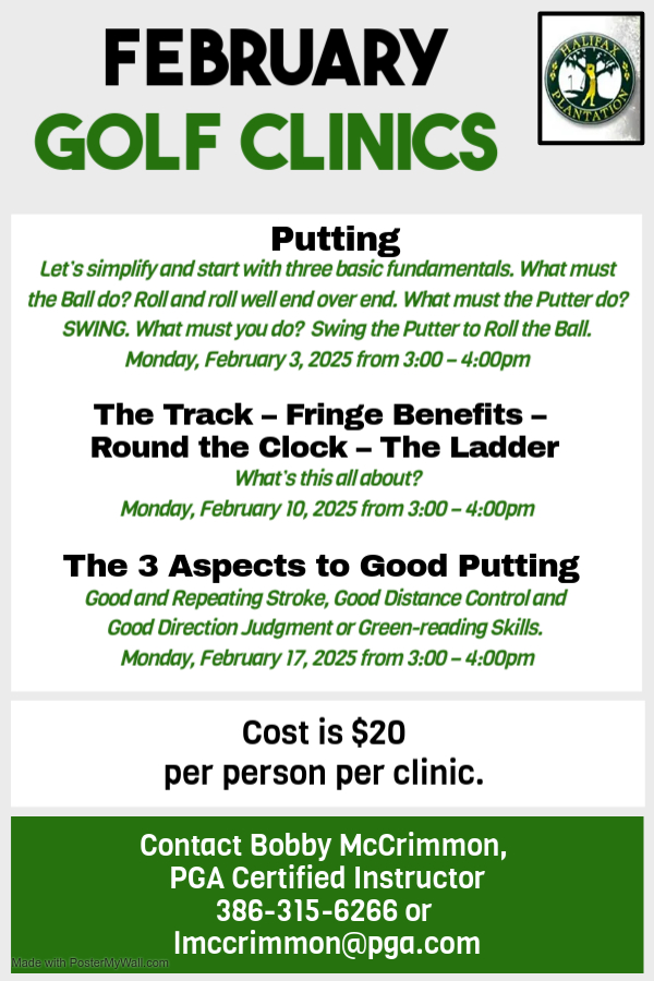 Golf Clinic: How to Practice/What to Practice November 19, 2024 by Date: January 27, 2025 Time: 3:00 pm to 4:00 pm