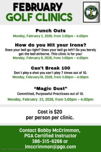Golf Clinic: How do you Hit your Irons? December 19, 2025 by Date: February 9, 2026 Time: 3:00 pm to 4:00 pm