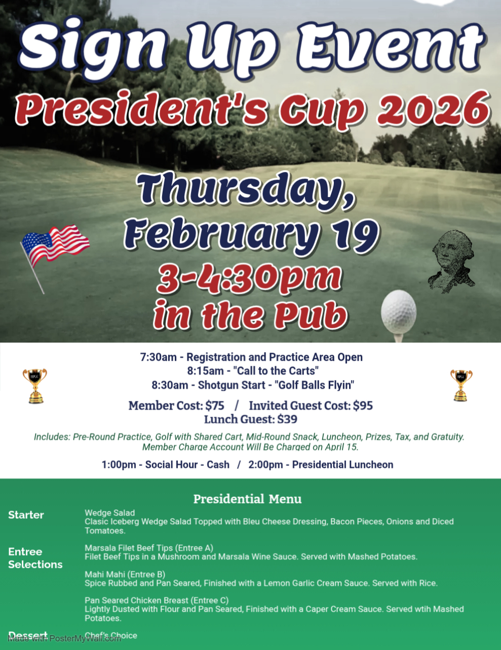 Sign Up Event – President’s Cup 2026 February 9, 2026 by Date: February 19, 2026 Time: 3:00 pm to 4:30 pm